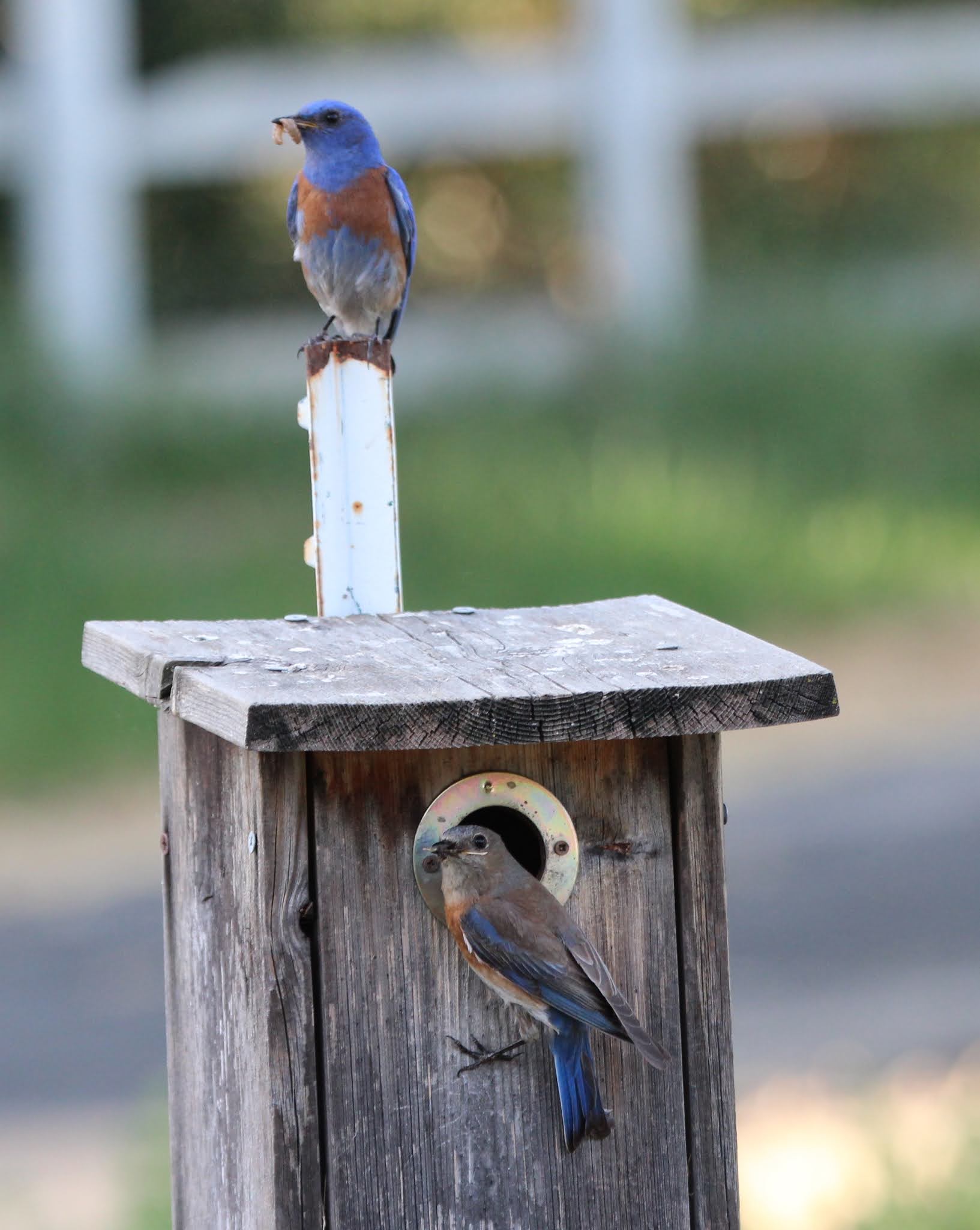 On June 3, 2020, LATO nature photographer Michael Klatt shared these beautiful photos of Western bluebirds nesting in the Klatt’s Atascadero backyard. The bluebird family vacated the nest – baby birds successfully fledged – a few days later. |