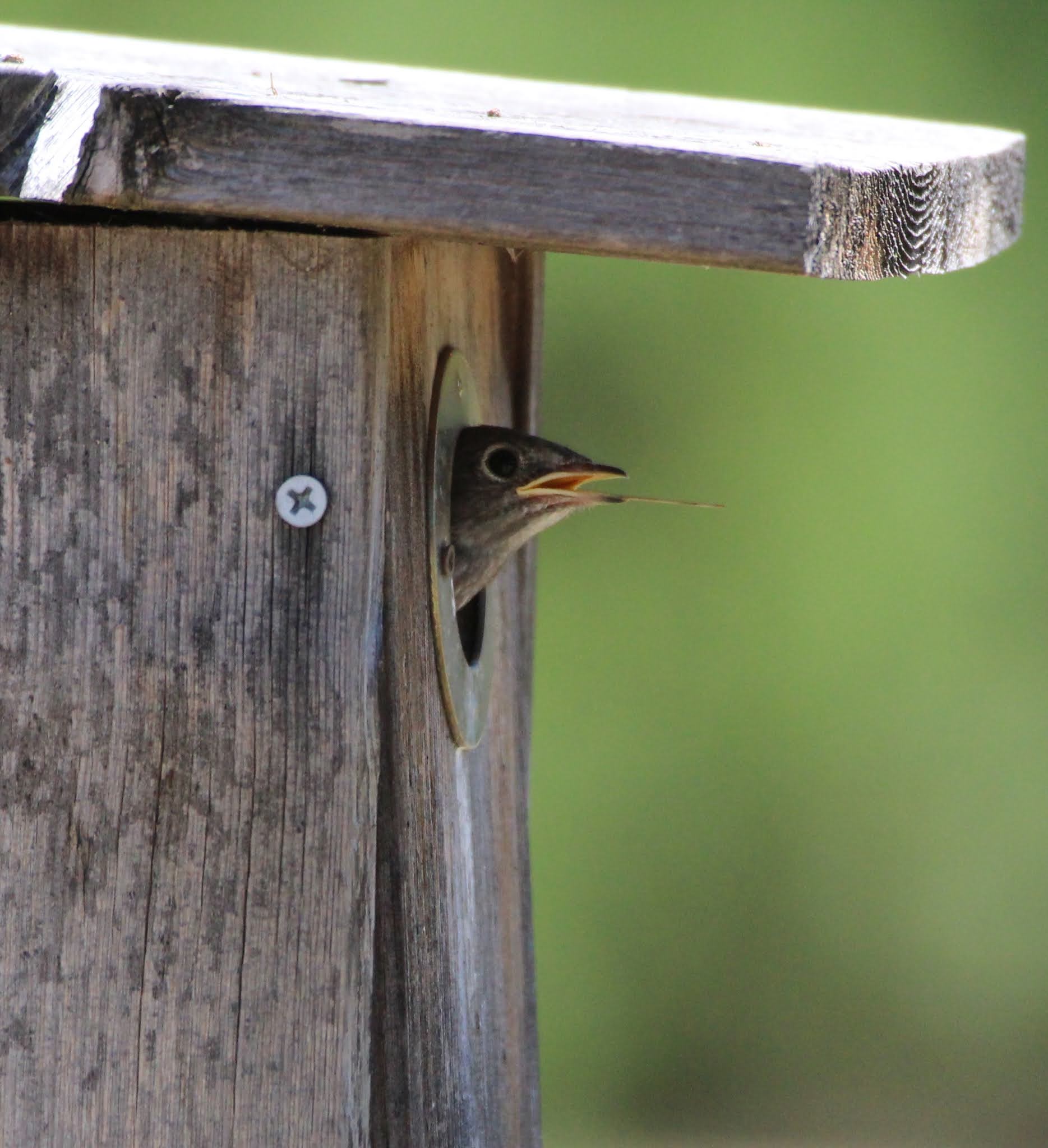 One of the nestlings looking out into the world. I’ll soon be ready to fly! |